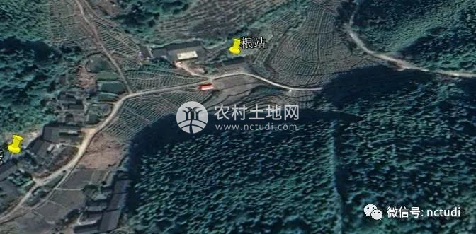 黃色標注為糧站所在地,旁邊的紅豆杉種植基地