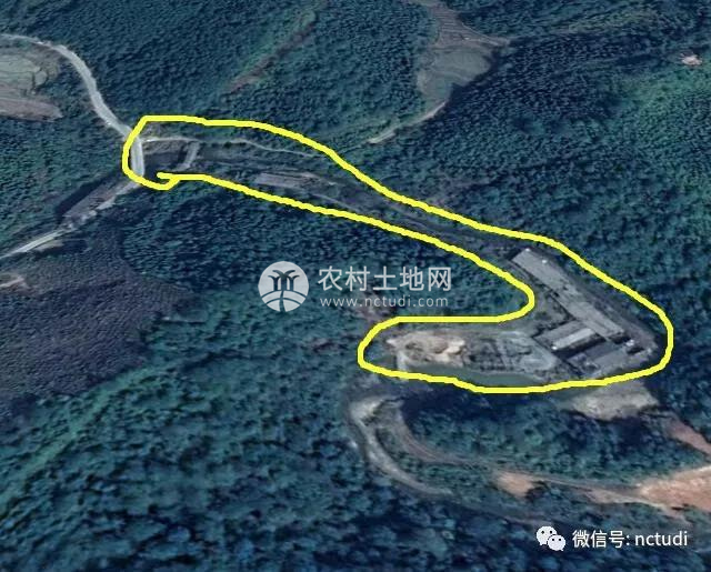 黃色區域為廠房后山可以出租的耕地