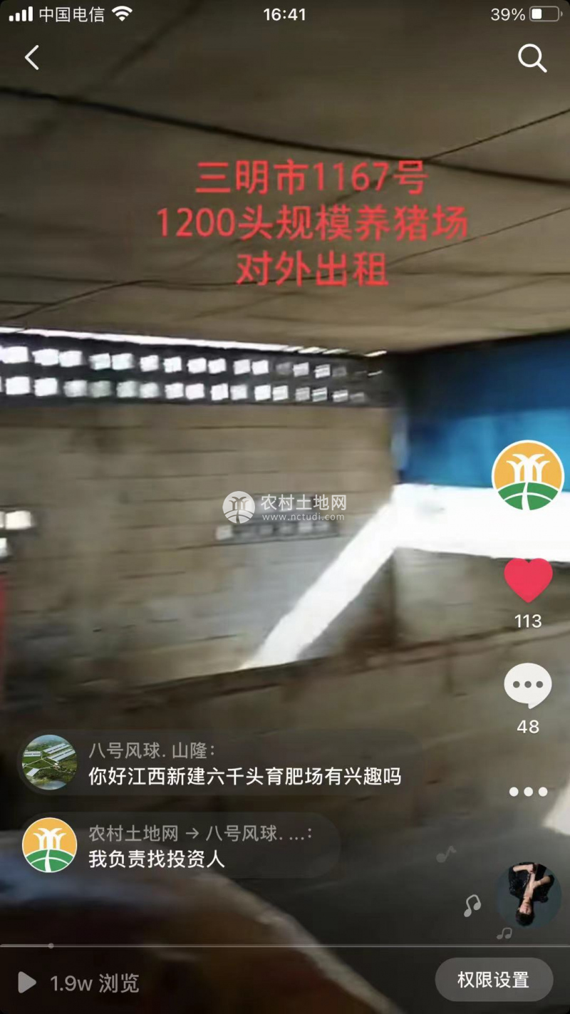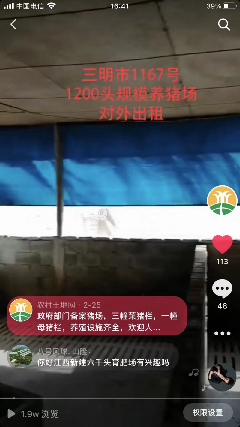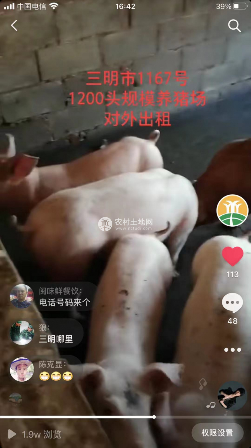 三明市2091號豬場 繁育250頭母豬 存欄2200頭生豬 年出欄4500頭 證照環評齊全