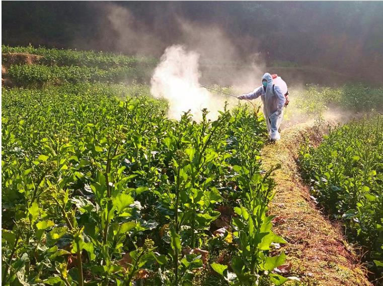“老鄉們,現在油菜已陸續進入初花期,也是防治菌核病等病蟲害的關鍵期,我們目前推薦使用的腐霉利、菌核凈、咪鮮胺等農藥低毒高效,能很好的預防油菜菌核病發生,我們要抓緊目前大好時間,搞好病蟲害防治,實現油菜高質高產……噴藥的時候一定要適度適量、噴灑均勻,同時要做好個人的防護措施……”